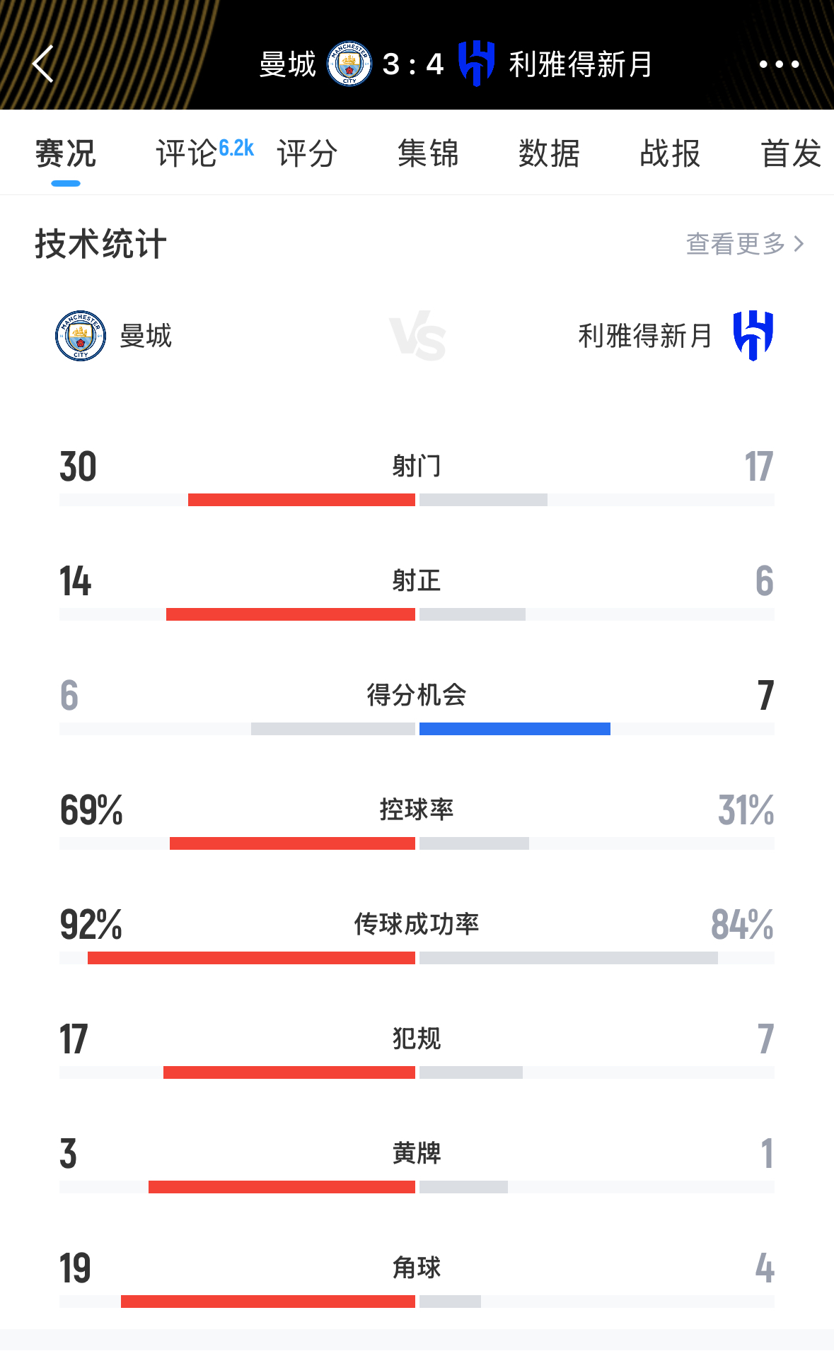 本场比赛跌宕起伏!常规时间曼城方面哈兰德、B席破门,而新月方面莱昂纳多、马尔科姆破门。