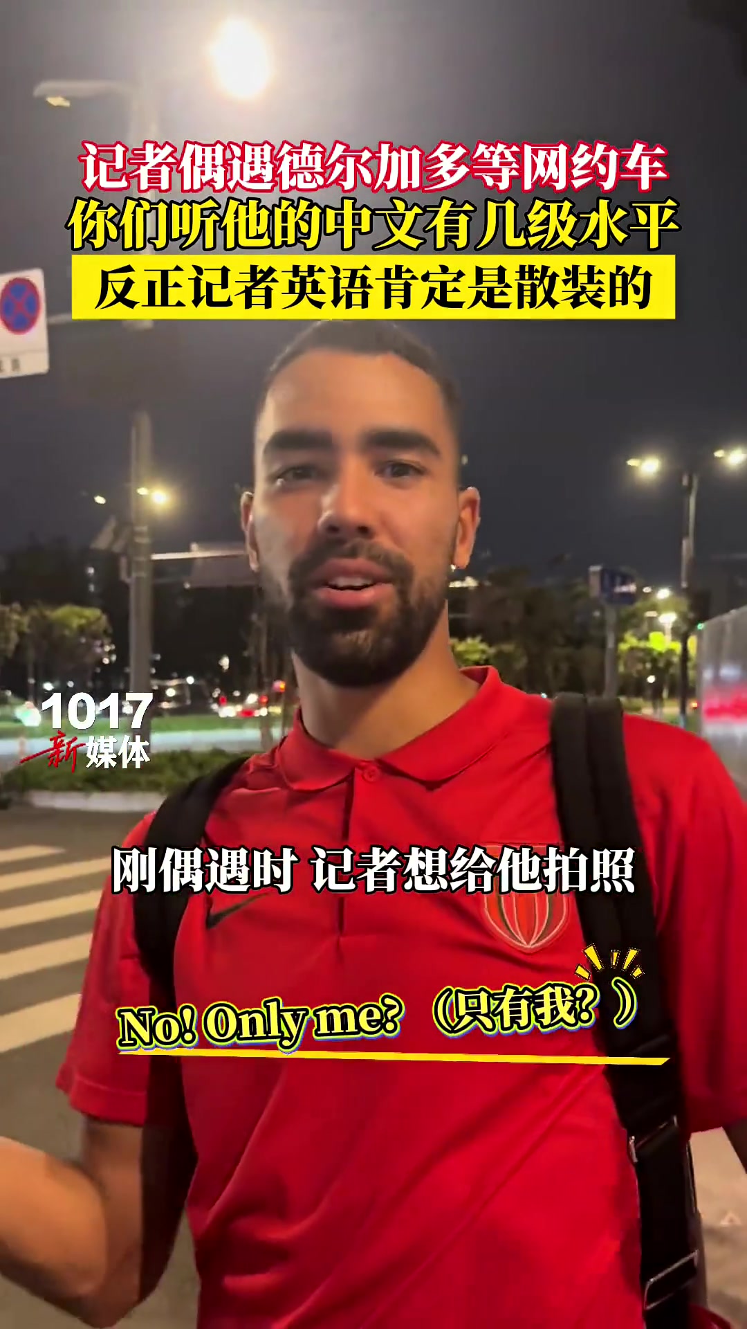 “四川交通广播”在社媒晒出一段记者偶遇德尔加多赛后等待网约车的视频,视频中德尔加多用流利的中文说道:“亚冠加油”,当记者要给他拍照时,德尔加多还说:“只拍我吗?一起!”并邀请记者与他一同合影。