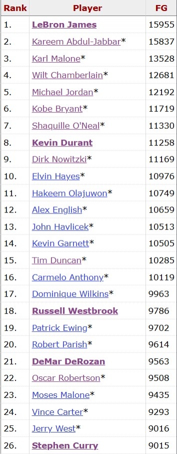 据统计,库里生涯命中数超越杰里·韦斯特,上升至